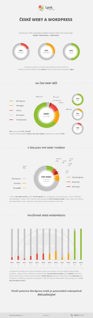 Naše společnost nabízí také službu Správa WordPress webů, kdy převezmeme správu nad vaším webem a soustavně se budeme starat o jeho bezpečnost, zálohování i výkon. Podívejte se také na podrobnější průzkum 65 000 tisíc českých webů.